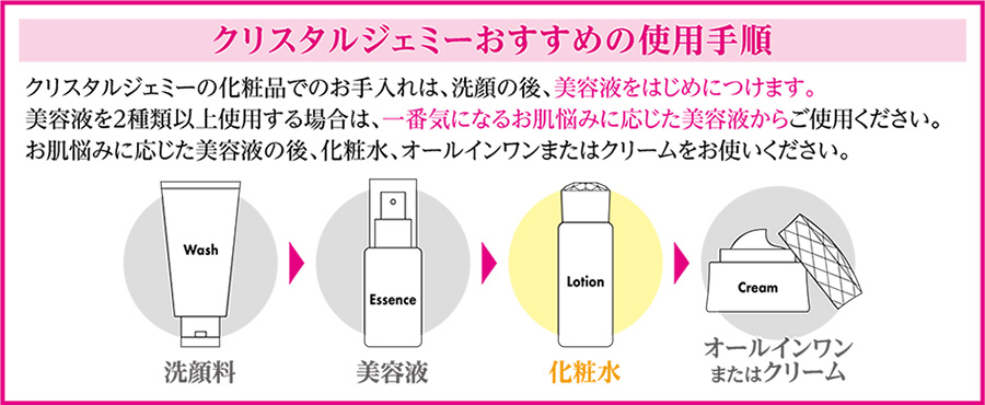 ※1 オリゴペプチド-68、オリゴペプチド-24、パルミトイルトリペプチド-38、アセチルヘキサペプチド-8、ヘキサペプチド-9、ヘキサペプチド-3、ジ酢酸ジペプチドジアミノブチロイルベンジルアミド ※2 セラミドNG、セラミドNP、セラミドAP ※3 フラガリアチロエンシス果汁、ヒナギク花エキス、加水分解コメヌカエキス、タベブイアインペチギノサ樹皮エキス、ザクロ果実エキス、ダイズ油 ※4 リン酸アスコルビルMg